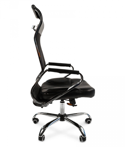Cвойства модели:Обивка Экопремиум/Сетчатый акрилПодлокотники Металлические хромированные с накладкамииз экокожиМеханизм качания С синхронным отклонением сидения и спинки 1:3, с фиксацией кресла в любом положении. Регулировка кресла по высоте.Крестовина Хромированный металлГазпатрон 3 класса по стандарту Germany DIN 4550Ролики Стандарт BIFMA 5,1 (США). Диаметр штока 11 мм.Каркас НемонолитныйНабивка кресла Стандартный поролон плотности 22-40 кг/м3Рекомендованная максимальная нагрузка 120 кг.Срок гарантии 2 года