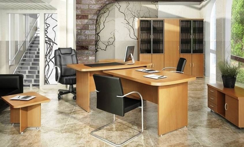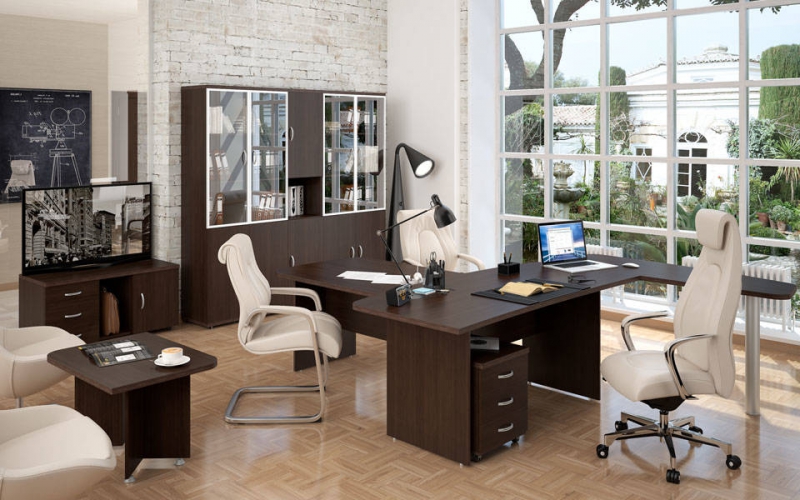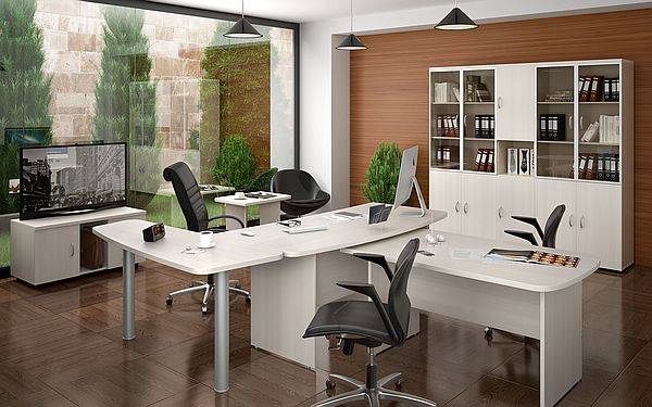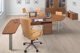 Кабинет «Эталон» – это простота и функциональность в сочетании с отличным качеством за минимальные деньги. Идеально подходит для начинающих коммерческих фирм. Мебель серии «Эталон» представляет собой стильную и комфортную мебель соответствующую всем требованиям кабинета руководителя. Криволинейный дизайн столешниц и приставок с различной цветовой гаммой подчеркивает строгость и презентабильность, что создает яркий и современный имидж кабинета.