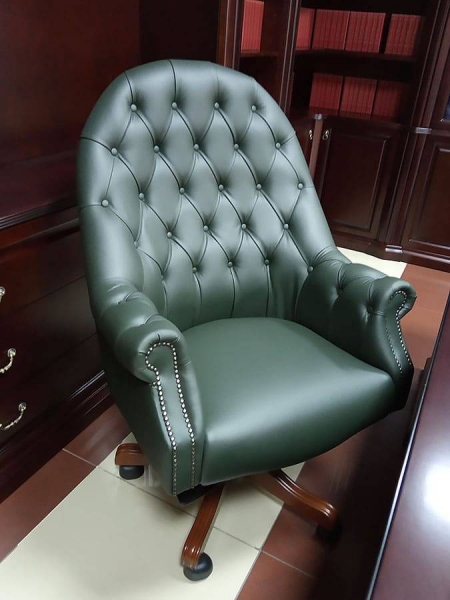 Кожаное кресло Карпаччо DL-050 — eщё одно кресло классической английской коллекции. Мы предлагаем использовать его в обстановке, когда следует подчеркнуть официальность и значимость встречи, не отказывая при этом собеседнику в некоторой приватности разговора.Производство: Directoria (Россия)Гарантия: 3 годаМаксимальная нагрузка: 120 кгСидение и спинка: поролон повышенной комфортностиМультиблок с регулировкой высоты и 5 ступенчатой фиксацией наклона спинкиОбивка: экокожа, нат.кожа Stella, нат.кожа Madras