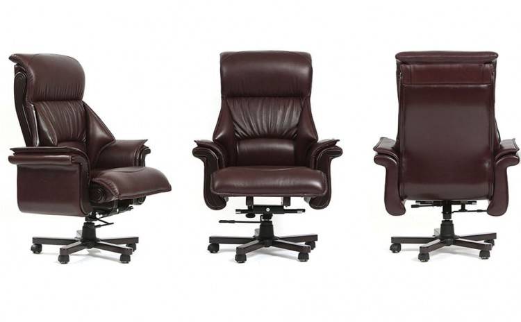 Кресло Пикассо DL-055Кресло для руководителя Пикассо DL-055 – массивное, респектабельное, классическое кресло. Работать за таким креслом – одно удовольствие. Удобная поддержка спины, мягкие кожаные подлокотники – все в этом кресле создано для комфорта. Возможно декорировать кресло деревянными накладками в цвет крестовины.Обивка кресла – кожа Madras, кожа Stella, или экокожа.Цвет обивки – один из 20 благородных оттенков темной или светлой гаммы.Цвет каркаса – 6 оттенков, подходящих к классическим кабинетам Directoria.Производство: РоссияГарантия: 3 годаМаксимальная нагрузка: 120 кгСидение и спинка: поролон повышенной комфортностиМультиблок с регулировкой высоты и 5 ступенчатой фиксацией наклона спинкиОбивка: экокожа, нат.кожа Stella, нат.кожа Madras