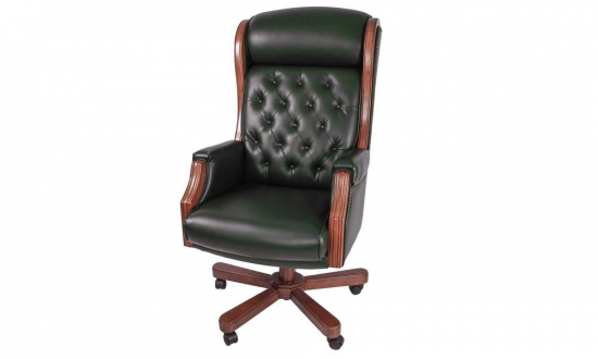 Богатое, выдержанное в консервативном классическом стиле, кресло руководителя 887 великолепно подойдет к кабинету Rishar. Материалом для обивки его мягких частей является высококачественная кожа сплит темно-зеленого или черного цвета. Английский ромб с декоративными пуговицами на высокой спинке с встроенным подголовником, подлокотники со вставками из натурального дерева выделяют это кресло руководителя среди прочих. Элегантность креслу 887 придает натуральная кожа и шпон цвета черешня на деревянных частях кресла (толщина слоя 0,6 миллиметров).Модель 488 оснащена механизмом качания, который позволяет осуществлять свободное качание в кресле, фиксировать наклон сидения и спинки в рабочем положении, а также регулировать силу отклонения сидения и спинки под вес сидящего. Пятилучье кресла сделано из черешни, а колеса с резиновым покрытием для паркетных и ламинированных поверхностей, выполнены в очень модном стиле.ХарактеристикиПроизводитель: КитайОбивочный материал: Кожа «SPLIT» SPРегулировка по высоте: газлифт с ограничением по весу до 120 кг.Механизм: Качания с регулировкой по весу.Подлокотники: Натуральная кожаКрестовина: Дерево черешняКолеса: Пластиковые ролики для паркетных и ламинированных поверхностей .