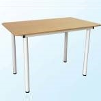 Столешница изготовлена из ДСП с пластиковым покрытием, цвет бук, углы закруглены, торцы облицованы кромкой ПВХ 2 мм. Под столешницей сварная рамка из трубы 25х25, к которой приварены ножки из трубы диаметром 51 мм.Металлокаркас окрашен порошково-полимерной краской