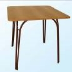 Металлокаркас состоит из двух пар дуг сваренных в области ножек из трубы диаметром 22 мм и окрашен порошково-полимерной краской. Столешница изготовлена из ДСП с пластиковым покрытием, цвет бук, углы закруглены, торцы облицованы кромкой ПВХ 2 мм