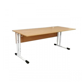 Столешница изготовлена из ЛДСП 16 мм, кромка ПВХ 2 мм. Металлокаркас изготовлен из труб диаметром 28, 32 мм и трубы 25х25 мм. Механизм регулировки высоты телескопический с двойным резьбовым соединением при помощи винта М6х12 со сферической головкой под крест, обеспечивающим жесткую фиксацию. С двух сторон приварены крючки для портфелей из стали 2 мм. Металлокаркас окрашен порошково-полимерной краской. На ножках наружные заглушки.