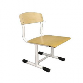 Сиденье и спинка изготовлены из гнуто-клееной фанеры крепятся к изогнутой в двух плоскостях трубе диаметром 22 мм при помощи односторонних заклепок. Опоры стула изготовлены из труб диаметром 28 и 32 мм. Механизм регулировки высоты телескопический с двойным резьбовым соединением при помощи винта М6х12 со сферической головкой под крест, обеспечивающим жесткую фиксацию. На ножках наружные заглушки. Металлокаркас окрашен порошково-полимерной краской.