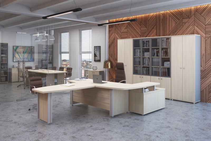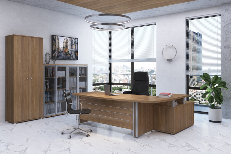 Кабинет руководителя Vasanta недорогой, но в тоже время качественный представитель линейки кабинетов эконом класса. В сочетании с серией оперативной мебелью Васанта решает вопрос комплексного оснащения офисных помещений.