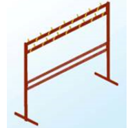 Металлокаркас состоит из двух вертикальных стоек из трубы 40х20мм, вверху соединенных двумя стяжками из трубы 40х20, на которых с двух сторон крепятся 26 металлических 2-рожковых крючка.В нижней части стойки соединены двумя стяжками из трубы 20х20мм. Вешалка окрашена порошково-полимерной краской